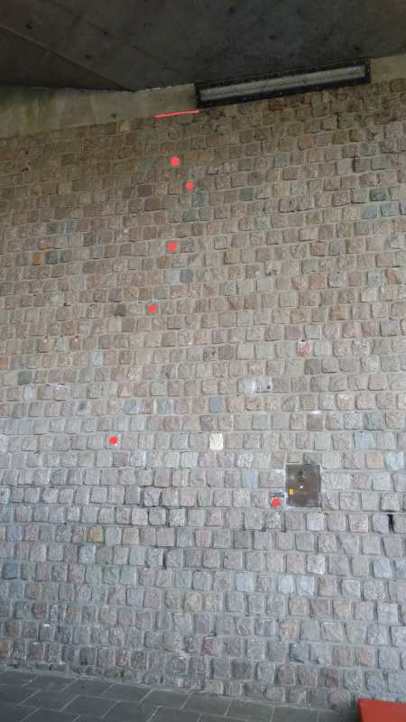 Dit is het rechter deel van de wand. Deze sector loop vanaf de deur tot aan de rechter hoek. De wand is hier iets hoger omdat de weg naar beneden loopt. Dus af en toe een flink hoge top gegarandeerd. Genoemd naar een oude (verdwenen) traverse.