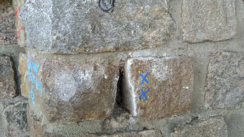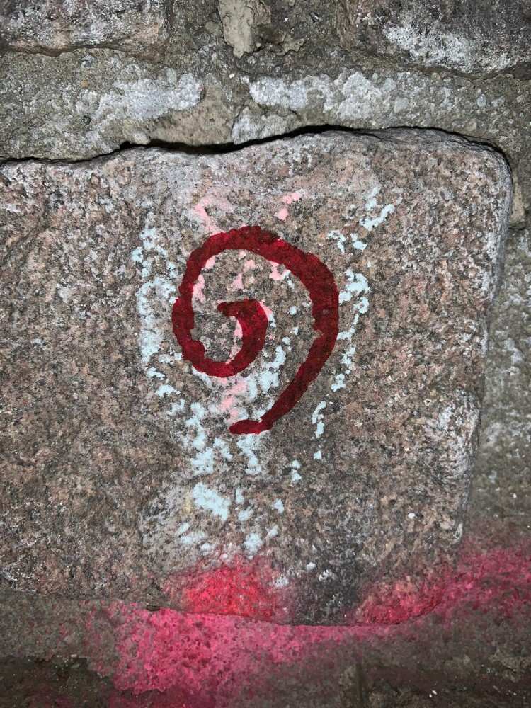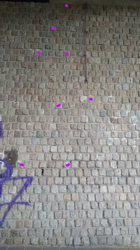 | rode ∇ | markering die de route aangeeft. Startgrepen proberen we zoveel mogelijk te onderstrepen, markeringen met een stip onder de markering zijn alléén voor de voeten |
