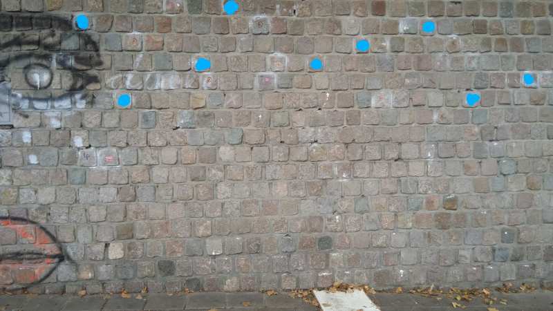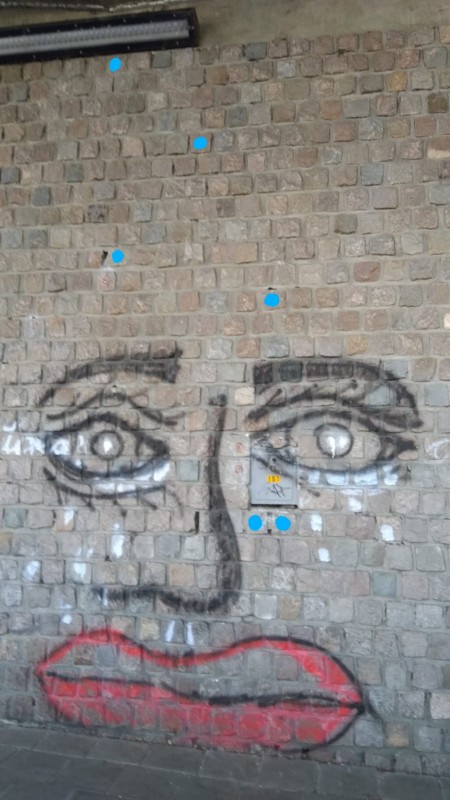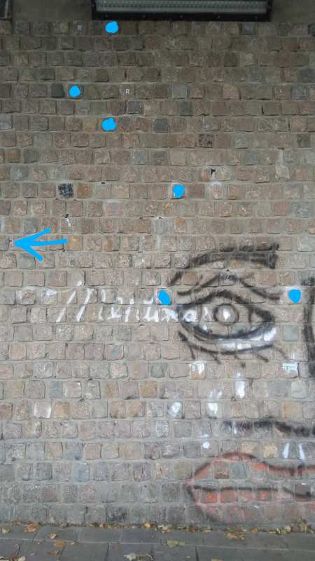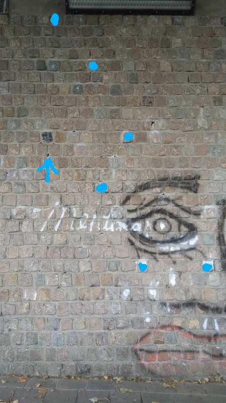 | volg de markering maar nu ook voor de voeten | |